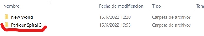El segundo paso es tan simple como descomprimir el archivo del mapa. Una vez descomprimas el archivo de este, te quedara una carpeta con el nombre de Parkour Spiral 3. La carpeta contiene el mapa del parkour listo para jugar.