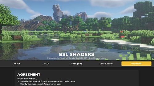 Para descargar los BSL shaders puedes darle clic a la siguiente imagen para ir directamente a su sitio oficial y una vez en el sitio solo bajas un poco y le das al botón de Descargar.